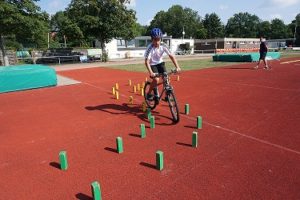 Der Mittwoch wurde auch in dieser Woche vom ADAC übernommen. Nach einer kleinen Theorieeinheit, in der sich alles um das verkehrssichere Fahrrad drehte, durften die Kinder mit Ihren Fahrrädern einen Parcours absolvieren, der mit verschiedenen Schwierigkeiten und Hindernissen geprägt war. Nach dieser Einheit in der Sonne, sind wir für das Spiel Wikingerschach in den Schatten gegangen und die Kinder konnten entspannt den Tag ausklingen lassen.