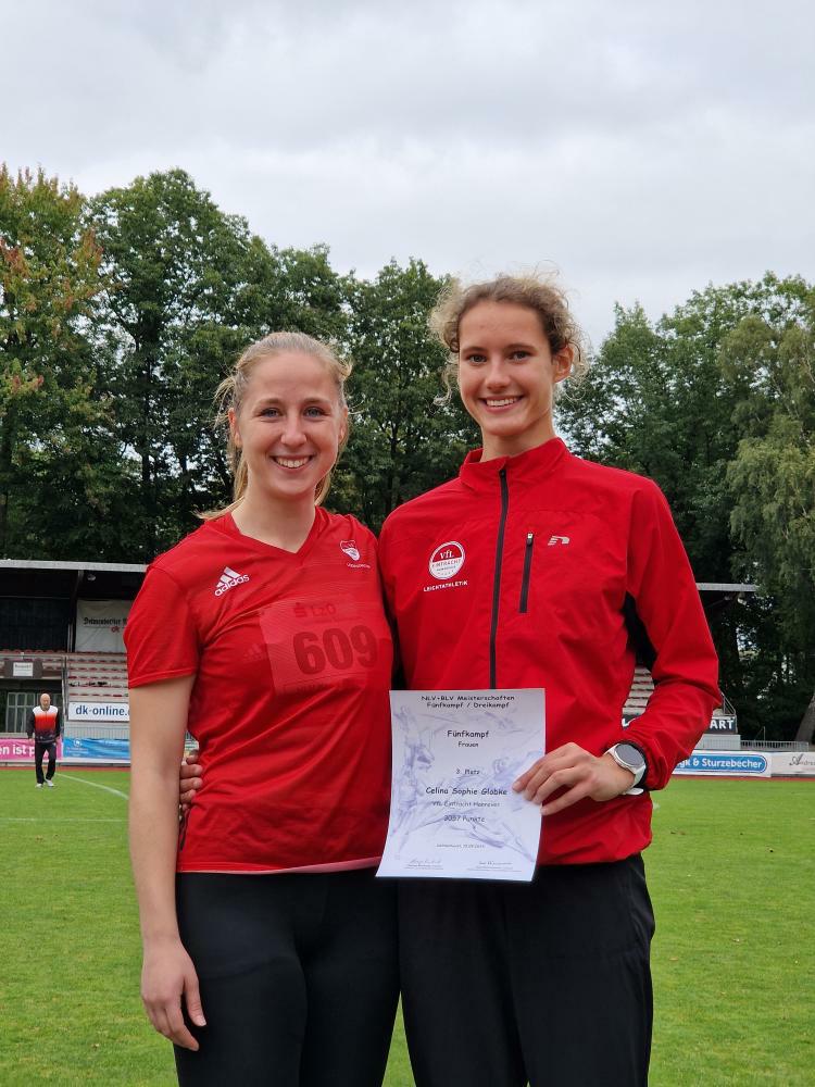 In der Frauenklasse steigerte Celina Sophie Globke ihre Bestleistung aus dem letzten Jahr um beeindruckende 530 Punkte auf 3.057 Punkte und landete damit als Drittplatzierte auf dem Podest. Über 100m (14,32s) und im Weitsprung (4,66m) zeigte sie solide Leistungen, während sie in ihren starken Disziplinen Kugelstoßen (11,97m) und Hochsprung (1,59m) jeweils als Disziplinsiegerin das Feld dominierte. Im abschließenden 800m-Lauf stellte sie zudem in 2:33,51 Minuten eine neue persönliche Bestzeit auf und kann mehr als zufrieden mit ihrem Fünfkampf sein.