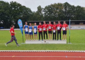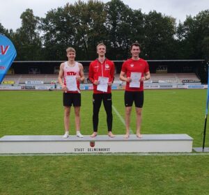 Nachdem die Generalprobe bei den Landesmeisterschaften im Einzel vergangene Woche geglückt war, reiste Benjamin dennoch mit einem kleinen Fragezeichen nach Delmenhorst, da er in den vergangenen Wochen krankheitsbedingt Trainingsausfälle hatte. Zwar kam er nicht an seine Fünfkampf-Bestleistung heran, doch seine Punktzahl von 2.847 reichte mit über 100 Punkten Vorsprung für den Sieg und damit den Landesmeistertitel! Er gewann den Weitsprung (6,08m) und kontrolliert die 1500m (4:53,95 Minuten), zeigte sich jedoch über 200m (24,02s) nicht zufrieden, was jedoch durch den Trainingsrückstand zu erklären war. Der Speer flog auf 39,90m und im Diskus gelang ihm mit 32,61m eine neue persönliche Bestleistung. Wir gratulieren zu diesem Erfolg!