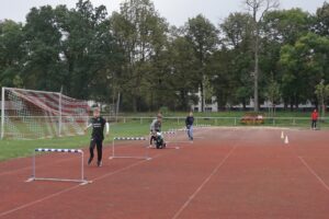 Am letzten Tag ging es zum Erika-Fisch-Stadion für den Abschlusswettkampf. Wir bekamen Besuch von Tina Deeken, der mehrfachen deutschen Meisterin im Para-Triathtlon. Nachdem sie uns berichtete, welche Herausforderungen sich ihr beim Para-Triathlon stellen, ging sie mit den Kindern an den Start.