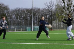 Von 10:00 bis 12:00 Uhr standen täglich Team- und Staffelspiele auf dem Programm. Hier mussten die Kinder zusammenarbeiten, um Herausforderungen wie „Katz und Maus“, „Vier Hände, drei Füße“ oder den „Uno-Lauf“ zu meistern. Besonders beliebt waren die Teamspiele „Quidditch“ und „Flagfootball“, die Teamgeist und Geschick erforderten. Am Freitag wurde sogar ein Blindenfußball-Turnier veranstaltet, bei dem die Kinder ihre Koordination und Teamfähigkeit unter Beweis stellten.