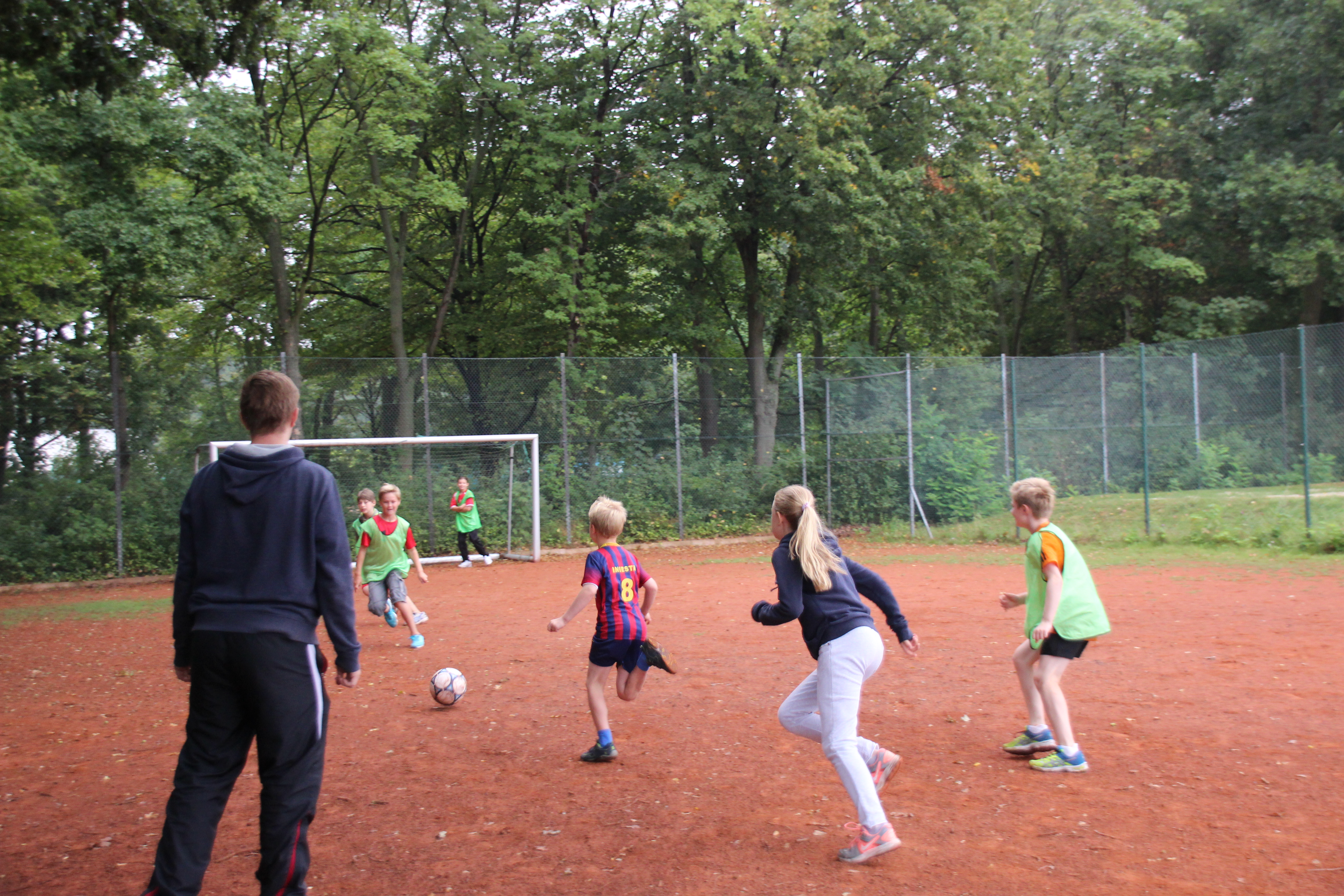 Das Highlight am Mittwoch war definitiv das in der Eilenriede stattfindende Spiel „Capture the Flag“. Hier haben sich alle Kinder vollkommen, aber auch immer fair, für das eigene Team eingesetzt. Beide Mannschaften wollten den Sieg unbedingt und es fanden viele spannende „Schnick-Schnack-Schnuck-Duelle“ statt. Am Donnerstag haben wir nach dem Mittagessen auf unserem Kunstrasenplatz ein Turnier „Blindenfußball“ gespielt. Auch hier haben sich die Mannschaften gegenseitig in den Spielen nichts geschenkt, haben dabei aber immer viel Sportsgeist und Wertschätzung gegenüber anderen Kindern gezeigt. Der Freitag war leider sehr verregnet, daher sind wir vormittags in die Halle gegangen, hier wurde der Boden plötzlich zu Lava und es konnte sich im Trockenen wieder aufgewärmt werden. Nachmittags haben die Kinder noch eine Parte „Schlag den Star“ gespielt bevor mit einer Abschlussüberraschung das Camp gemeinsam beendet wurde.