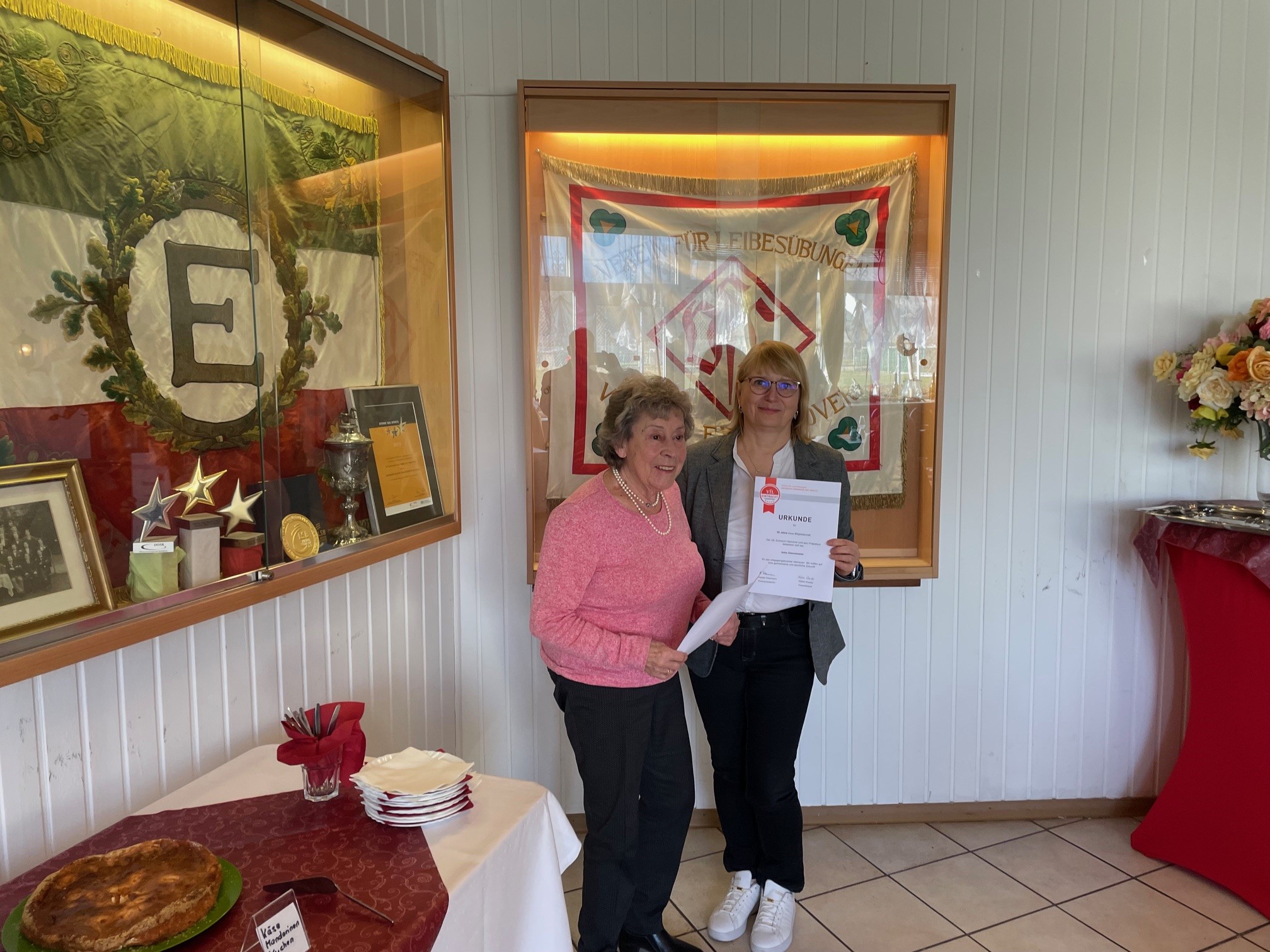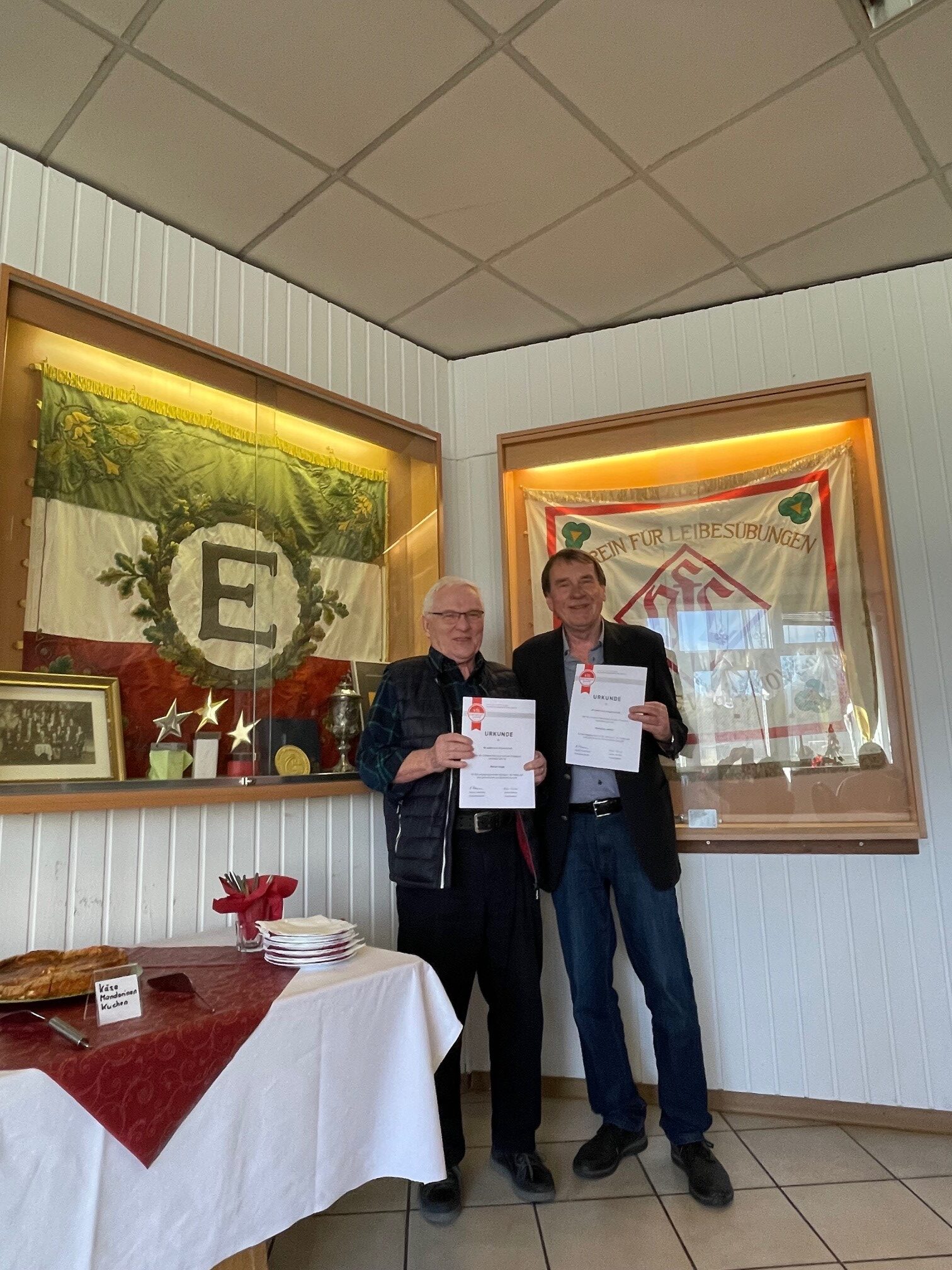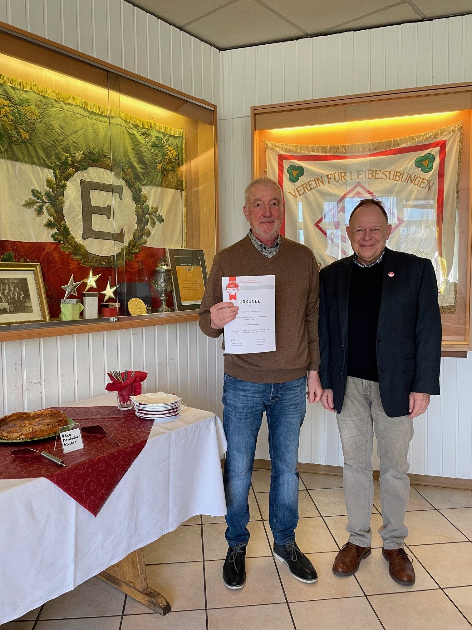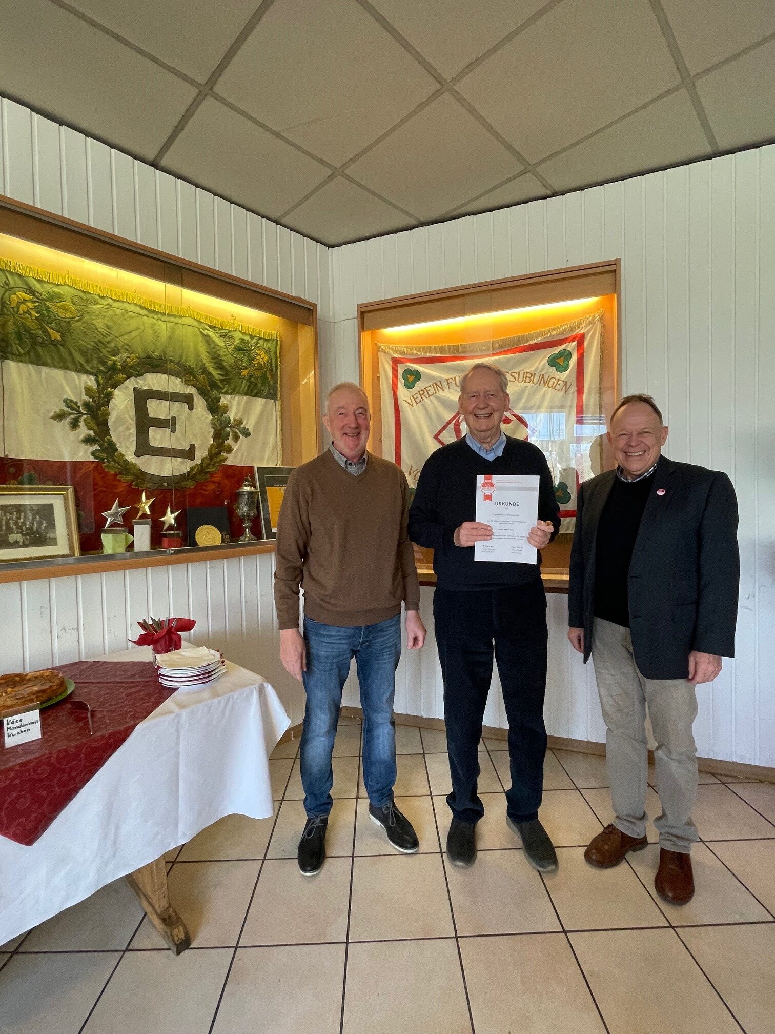70 Jahre Mitglied in einem Verein – was für eine Zahl. Das funktioniert nur, wenn man schon in ganz jungen Jahren als Mitglied angemeldet wurde. Das stellte sich am vergangenen Wochenende heraus, als eine kleine, aber gut gelaunte Schar von Vereinsmitgliedern für ihre langjährige Mitgliedschaft in unserem Verein geehrt wurde. Besonders freute sich Vizepräsident Stefan Roeder über die Anwesenheit von Klaus Meyer-Elze, der für die erwähnte 70 jährige Vereinszugehörigkeit geehrt wurde. Mit ihm wurden auch andere Mitglieder für ihre mindesten 25 jährige Treue zum Verein geehrt.