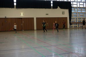 Am Nachmittag haben wir in der Halle ein Spiel aus dem Trendsportbereich gespielt. Es wurde „Walking Football“ gespielt. Die Herausforderung besteht darin, dass man nur im Gehen Fußball spielen darf. Bei den Kindern stieß das Spiel auf Begeisterung und hat ihnen viel Spaß gemacht.