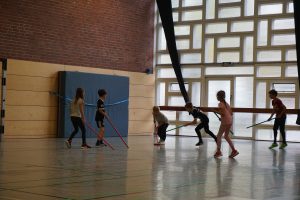 Zum Ende der Woche stand Stöcky auf dem Plan, welches wie Hockey gespielt wird. Anstatt mit Hockeyschläger und Puck wird mit Gymnastikstäben und einem Gummiring gespielt. Dieses haben wir in Turnierform gespielt, wobei das Team mit den meisten Siegen als Gewinner ermittelt wurde.