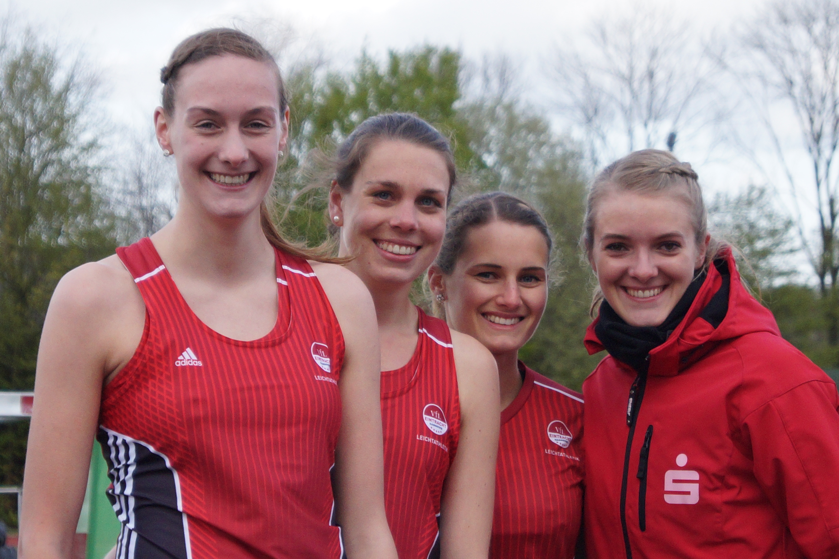 Die 4 x 400 Meter-Staffel der F rauen startete als Staffelteam und lief ein hervorragendes Rennen und wurde souverän Landesmeister in der Zeit von 3:54,45 Minuten mit rund 100 Meter Vorsprung vor dem Bremer LT. Das Team lief in der Besetzung Ann-Katrin Kopf, Aline Petry, Vanessa Reichenbach und Johanna Schierholt und unterbot die Qualifikations-Norm für die Deutsche Meisterschaft (3:58,0 Minuten) deutlich. Dies ist umso bemerkenswerter, da Laura Gläsner und Ruth Sophia Spelmeyer, die beiden stärksten Läuferinnen, wegen der Teilnahme an den Staffelweltmeisterschaften in Nassau/Bahamas nicht dabei waren.