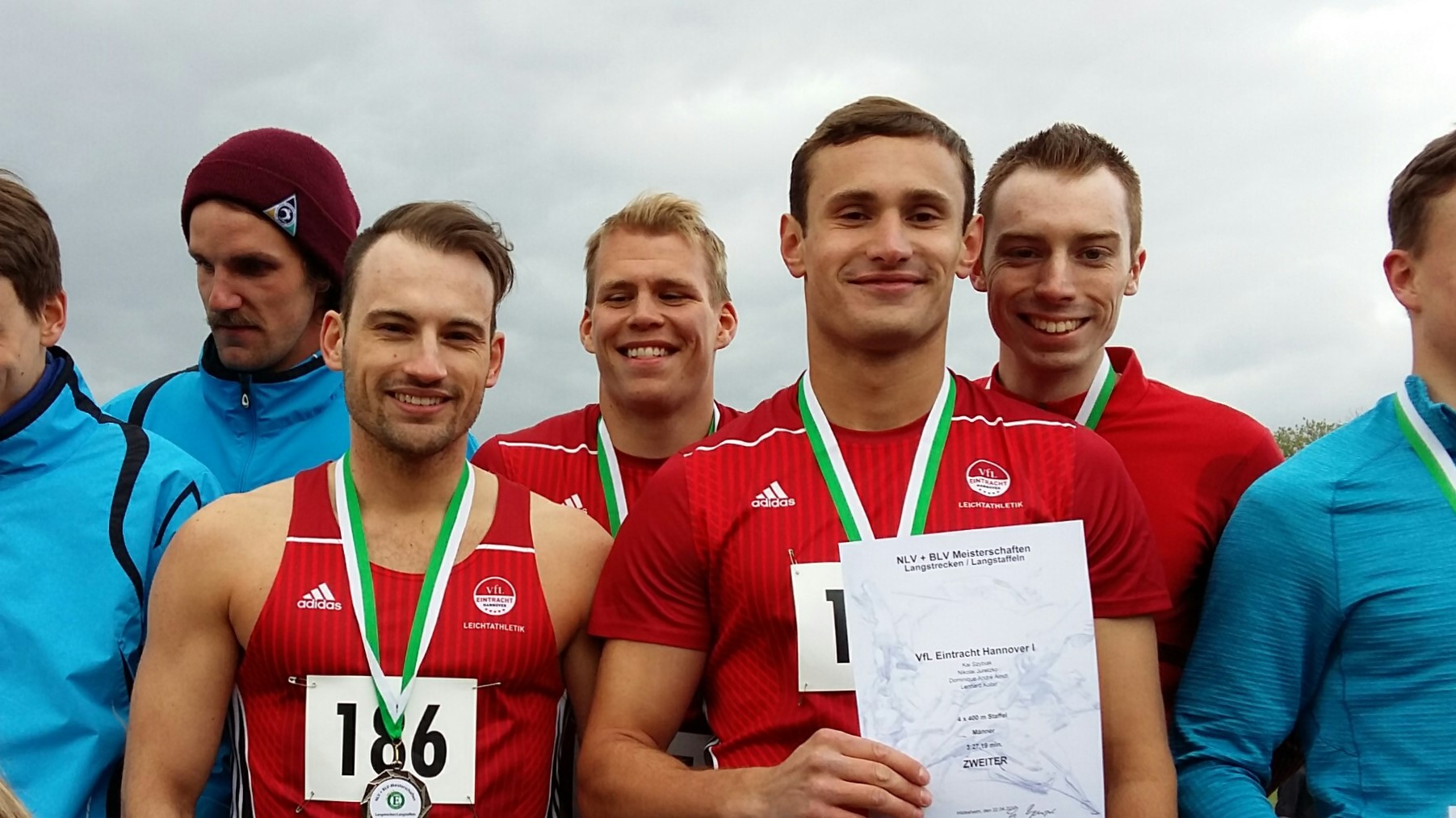 Die 4 x 400 Meter Männerstaffel wurde Landesvizemeister mit der Mannschaft Kai Szybiak, Nikolai Juretzko, Dominique André Arndt und Lennard Kolter in 3:27,19 Minuten knapp hinter der LG Unterlüß/Faßberg/ Oldendorf. Den Ausfall von Alexander Juretzko, der wegen des Einsatzes für die Nationalmannschaft in Nassau/Bahamas verhindert war, und Robert Wolter konnte die Mannschaft nicht kompensieren. Beachtlich, dass trotz dieser Ausfälle noch eine zweite Mannschaft zustande kam und das Ziel als fünfte erreichte, die wie folgt lief: Benjamin Küch, Daniel Napp, Jasper Trampler und Isacc Ndiaye.