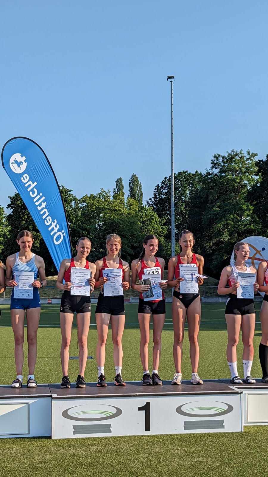 In der weiblichen Jugend U18 ging der Landesmeistertitel über die 200m mit einem deutlichen Vorsprung von einer Sekunde an Luna Fischer. Sie siegte souverän in 24,90s. Auch über die 100m stand sie als Dritte in 12,37s auf dem Podest, nachdem sie im Vorlauf in 12,34s eine neue persönliche Bestzeit (PB) aufgestellt hatte. Damit blieb sie auf beiden Strecken erneut unter der Qualifikationsnorm für die Deutschen Jugendmeisterschaften. Über 100m ging zudem der 8. Platz an Thede Jakob in 12,86s. Auch sie hatte zuvor im Vorlauf mit 12,79s eine neue PB aufgestellt. Siebenkämpferin Karla Humphrey verzichtete nach einer Zeit von 12,62s im Vorlauf auf den Finallauf. Gemeinsam mit Charlotte Waldkirch als Startläuferin gewannen Luna, Karla und Thede in einer herausragenden Zeit von 47,86s den Titel in der 4x100m-Staffel. Diese Zeit bedeutet aktuell den zweiten Platz in der deutschen Jahresbestenliste!