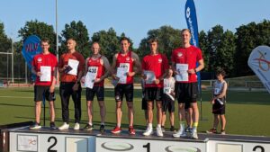 Auch die Männer waren gleich mit zwei Staffeln vertreten – und das erfolgreich! Benjamin Küch, Robert Wolters, Fabio Borchardt, Armin Baaske liefen 43,02s und damit zum Meistertitel, während Phil Halfmann, Kai Szybiak, Lennard Kolter und Daniel Napp mit 44,28s und Platz 2 den Doppelsieg perfekt machten. Einen weiteren Titel konnte Torben Schaper im Hammerwurf souverän mit einer Weite von 59,59m gewinnen. Im Speerwurf gingen die Plätze 5 und 6 an die U20-Athleten Lukas Tsoleridis mit 53,71m und Nick Lampe mit 51,88m. Julian Bilsky belegte im Kugelstoßen Rang 4 mit 14,11m und im Diskuswurf mit 38,01m Rang 6.