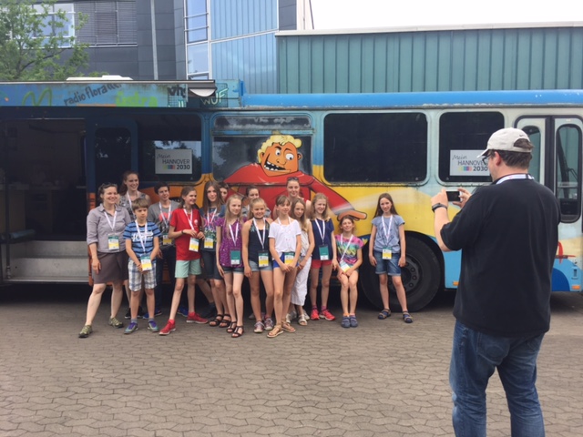 Kinder und Jugendliche vom VfL Eintracht Hannover sammeln Impressionen von den Special Olympics Hannover 2016. Angeleitet werden sie dabei vom Verein Politik zum Anfassen.