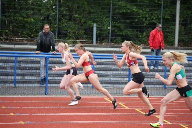 Livia Fischer (U20) mach­te einen Freu­den­sprung über ihr Ergeb­nis über 100 m. Sie ver­bes­ser­te sich um 0,2 sec auf her­vor­ra­gen­de 12,24 sec und schaff­te damit auch die Qua­li­fi­ka­ti­on für die Deut­schen Jugend­meis­ter­schaf­ten. Auch über 200 m reich­te es in neu­er Best­zeit zum Sieg. Die Uhr blieb bei 25,55 sec ste­hen. Sven­ja Pape wur­de in 26,00 sec. Zweite.