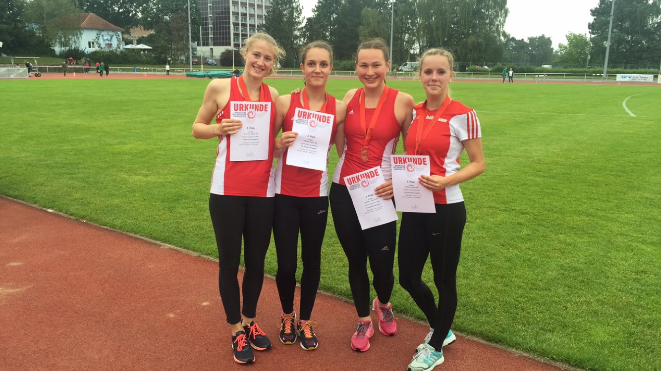 Die 4 x 100 Meter Staffel lief in der Besetzung Smilla Brand, Miriam Hoppe, Marlene Heimann und Luna Böder Bestzeit in sehr guten 48,69 Sekunden. Mit dieser Zeit sind die Mädels die Nummer Eins in Niedersachsen und erreichten die Qualifikationsnorm für die Deutsche Jugend Meister in Mönchen-Gladbach.