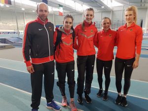 Beim Hallenländerkampf Frankreich Deutschland, Italien eingesetzte niedersächsische Athletinnen mit Landes- und Bundestrainer Björn Sterzel.