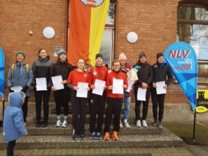 Zweiter in der M15 in 17:49 Minuten wurde Kiyan Shahsavar und Fünfter der MJU18 Paul Lecher in 17:24 Minuten. In der W15 lief Kendra Giesler 20:40 Minuten und wurde Vierte. Einen tollen dritten Platz erreichte Paula Battermann in der WJU20 mit 20:59 Minuten. Die meisten unserer Läuferinnen starteten bei den Frauen. Marie Pröpsting wurde Vizelandesmeisterin in 17:58 Minuten. Es war ihr erster Start seit circa einem Jahr, da sie durch gesundheitliche Probleme ausgebremst wurde. Die weiteren Platzierungen: 5. Pauline Berg 18:55 Min., 6. Manon Martsch 19:23 Min., 9. Franziska Stasch 19:33 Min. und 11. Lea Siegmund 19:45 Min. Die Mannschaft mit Marie, Pauline und Manon gewann in 56:16 Minuten sensationell den Landesmeistertitel und Franziska, Lea und Paula (1:00:17 Min.) wurden Sechste von insgesamt 11 Mannschaften. Die LA-Abteilung freut sich über die tolle Teamleistung und sagt “Herzlichen Glückwunsch”, auch an Maud und Ernst, die ihre Trainingsgruppe bestens vorbereitet hatten. Fotogalerie:
