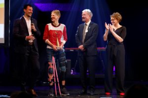 Sie hätte es niemals für möglich gehalten. Zu stark fand sie die sportlichen Leistungen der anderen Kandidat*innen. Doch das für die Para Eisschwimmerin und Triathletin so Unvorstellbare ist wahr geworden. Bei der gleichermaßen beliebten wie glanzvollen Gala im GOP Varieté Hannover wurde Tina Deeken am Donnerstag Abend zur „Behindertensportler*in des Jahres“ 2023 in Niedersachsen gekürt. Im Beisein der niedersächsischen Innen- und Sportministerin Daniela Behrens und des neuen Präsidenten des LandesSportBundes Niedersachsen André Kwiatkowski überreichte Karl Finke, Präsident des Behinderten-Sportverbandes Niedersachsen (BSN), der verblüfften Siegerin die kunstvolle Siegerskulptur des Bildhauers Siegfried Neuenhausen mit den Worten: „Du bist mit Deiner Tatkraft, Deinem Durchhaltevermögen und Deiner Leistungsfähigkeit für uns alle ein großes Vorbild! Mit dieser Auszeichnung wollen wir uns dafür bei Dir bedanken. Mach’ weiter so, Tina!“ Damit sprach er all den Wähler*innen, die Tina Deeken ihre Stimme gegeben hatten, aus dem Herzen.